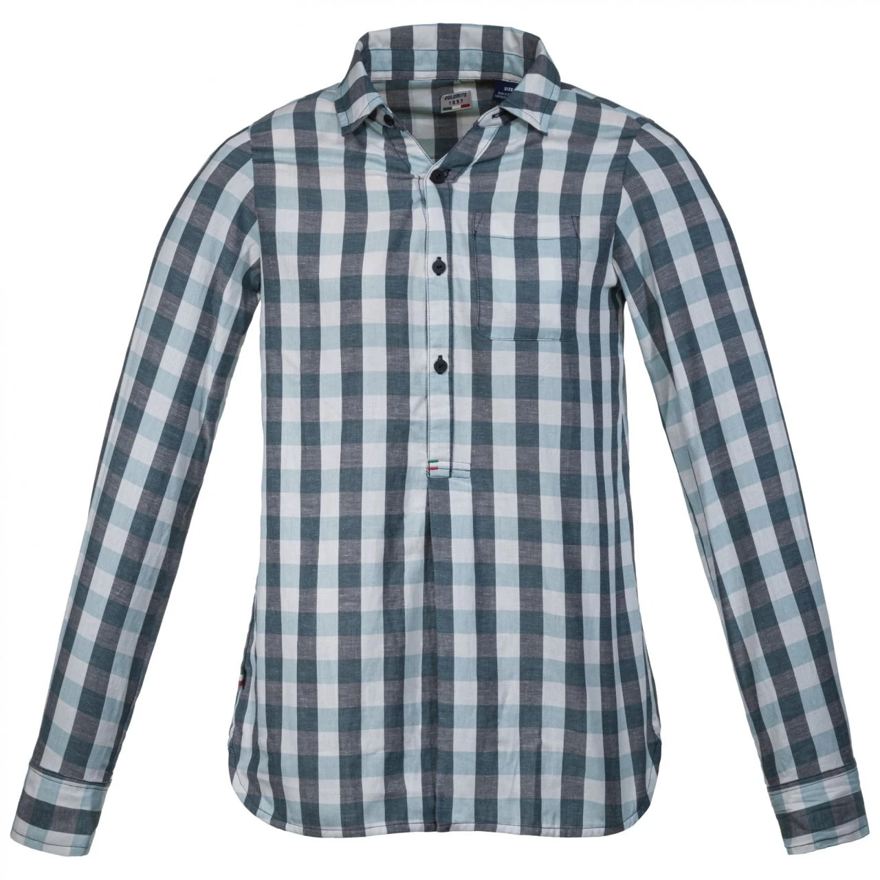 Das Shirt Long Sleeve Seren Check von DOLOMITE für Damen ist ein komfortables Langarmshirt aus einem Baumwoll-Polyester-Leinen-Mix.