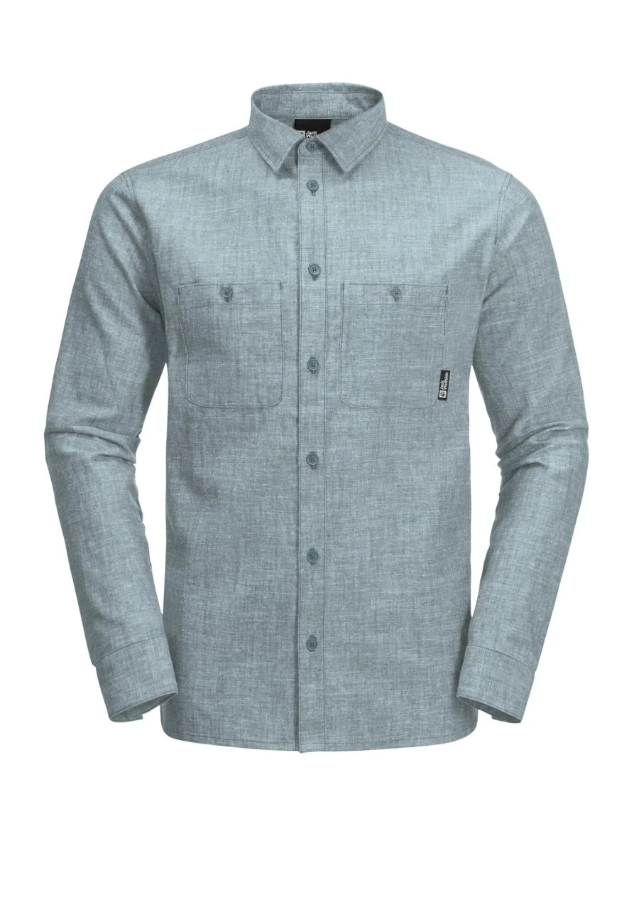 Das Sandroute Shirt von JACK WOLFSKIN für Herren ist ein luftiges Hemd aus Bio-Baumwolle und Hanf in Melange-Optik.
